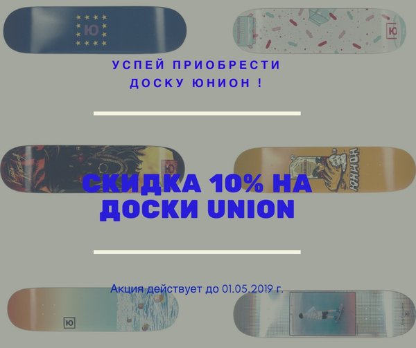 Запускаем акцию на деки Юнион -10% на любую деку Юнион из новой коллекции 2019 До 01.05.2019 включительно