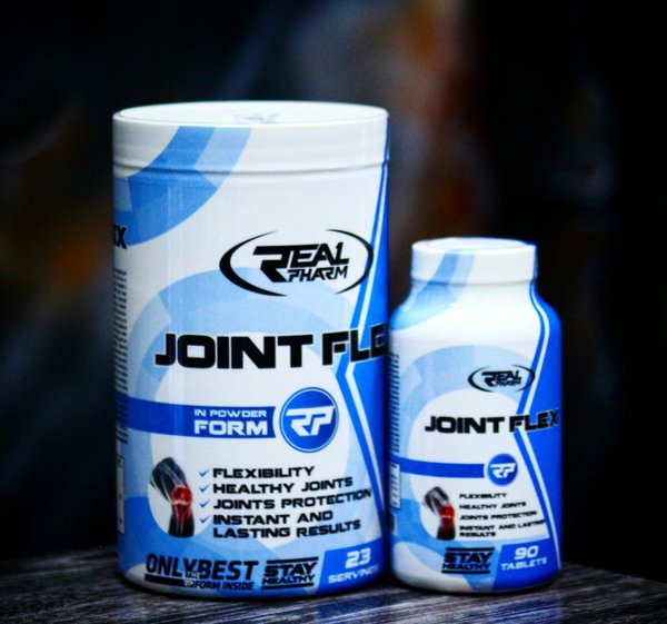 Joint Flex Real Pharmспециально создан для людей акивно занимающихся спортом, для тех кто имел в прошлом травмы или испытывает дегенеративные проблемы в силу возраста.Глюкозамин, который содержится в продукте существенно ограничивает катаболические процессы в хрящевой ткани суставов и принимает участие в создании синовиальной жидкости. Хондроитина — это основной строительный блок, коорый отвечает за регенерацию соединительной ткани, тем самым защищая хрящи от разрушения. А МСМ отвечает за синтез волокон коллагена, и совместно с гиалуроновой кислотой считается основным компонентом межклеточного субстанции в хряща — синовиальной жидкости.