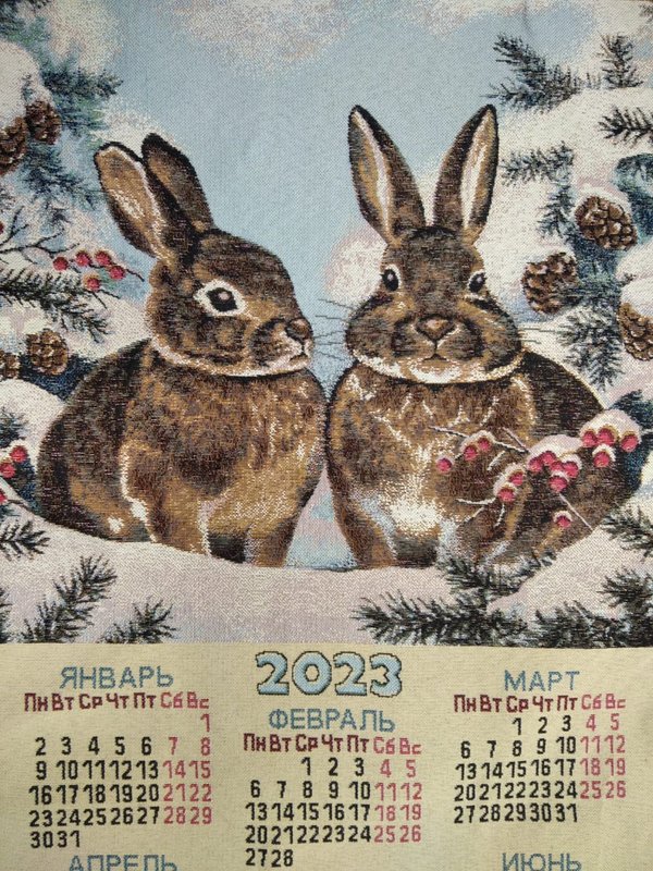 Идея для подарка — Календарь из гобелена с символом предстоящего года 2023 — Кролика Цена — 7000 тенге Размеры: 40×87см Ткань: ХБ, смешанные волокна В наличии очень мало, новая поставка Самое лучшее разбирают в первую очередь, помните об этом! p.s.в актуальном разделе ДЕКОР запишу видеообзор для вас Магазины «ЁЛКИ» с 10:00 до 21:00 Нур-Султан, ул.Мангилик ел 53, блок С, оф.3 Алматы,Курмангазы 77/Наурызбай батыра 105