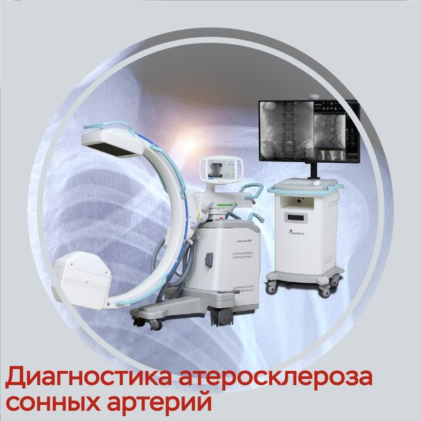 и для выявления и оценки стеноза являются: 1. DSA (Цифровая субтракционная ангиография): специфичность — 100% 2. КТА (Компьютерно-томографическая ангиография): ~ 95% 3. МРА (Бесконтрастная магнитно-резонансная ангиография): ~ 89% 4. Дуплексное сканирование сонных артерий: ~ высокая зависимость от исследователя. Методика DSA является золотым стандартом в диагностике атеросклеротического поражения сонных артерий и одновременно позволяет провести эндоваскулярную операцию – стентирование сонных артерий. Операция возможна к осуществлению под рентгеноскопическим контролем, используя новейшее оборудование в виде стационарных ангиографических систем или мобильных C дуг, так как именно в данных типах систем присутствует возможность использования DSA (цифровой субтракционной ангиографии), суть которой заключается в усилении изображения контрастированных сосудов используя компьютерную обработку и субтракцию (исключение, вычитание) неконтрастированных изображений объектов, не имеющих диагностической ценности — скелета, мягких тканей. Лучшим выбором для подобных манипуляций являются Мобильные рентгеноскопические системы типа С дуга серии Oscar, Южнокорейского производителя Genoray. Call Center: БЕСПЛАТНО по РК) ⠀