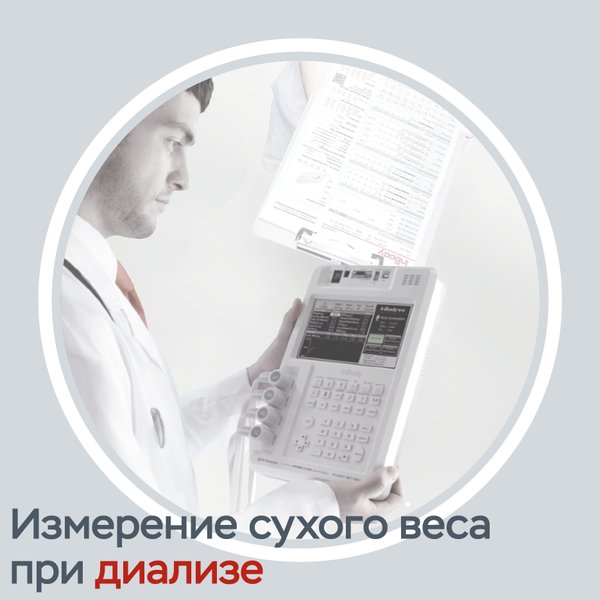 для выявления проблем с кровообращением и оценить мышечную и жировую массу для внесения изменений в рацион питания. В случае пациентов на диализе, вода в их организме является слишком гидратированной и нестабильной. Чтобы стабилизировать уровень воды в организме пациентам приходится ждать более 60 минут в положении лежа на спине для получения наиболее точных результатов. Именно поэтому рекомендованным условием проведения измерений с помощью анализатора состава тела является время после диализа, когда внеклеточная вода и внутриклеточная вода стабилизируются после 3-4-часового пребывания пациента в положении лежа на спине. После окончания диализа содержание внутриклеточной воды и внеклеточной воды является достаточно стабильным для проведения измерений и оценки текущего сухого веса. Почему анализатор состава тела InBody S10 незаменим при диализе? 1. Аппарат предоставляет данные о содержании ВКЖ, ОКЖ, ОВО; 2. Отслеживание накопления жидкости и прибавления веса в реальном выражении; 3. Более 100 измеряемых параметров; 4. Фазовый угол в каждом из 5 сегментов тела (правая рука, левая рука, туловище, правая нога, левая нога); 5. Тетраполярная 8-точечная система тактильных электродов/электродов-липучек; 6. Четкий контроль за приемом жидкости и рационом питания.