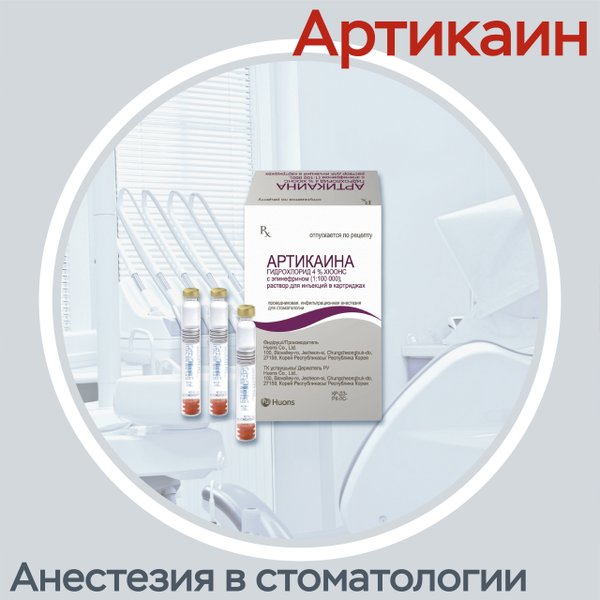 гического лечения. Тот факт, что выполнение обезболивания является необходимой и неотъемлемой частью стоматологического лечения на сегодня уже не вызывает сомнения. Но при проведении обезболивания стоматологу необходимо учитывать 2 важных момента: 1. местная анестезия должна быть максимально эффективна и полностью устранять болевую чувствительность в области вмешательства; 2. необходимо свести к минимуму воздействие на организм веществ, которые входят в состав препарата. Артикаин с эпинефрином представляет собой комбинированное средство. Артикаин оказывает местноанестезирующее действие, Эпинефрин, вызывая сужение сосудов в месте введения, затрудняет его всасывание и удлиняет действие. Время наступления эффекта — 1—2,5 мин, длительность действия до 75 мин. Препарат применяется для инфильтрационной и проводниковой анестезии при лечении и удалении зубов, препарировании зубов под ортопедические конструкции, проведении амбулаторных хирургических вмешательств. Для заказа обращайтесь к нашим специалистам Call Center: БЕСПЛАТНО по РК) ⠀