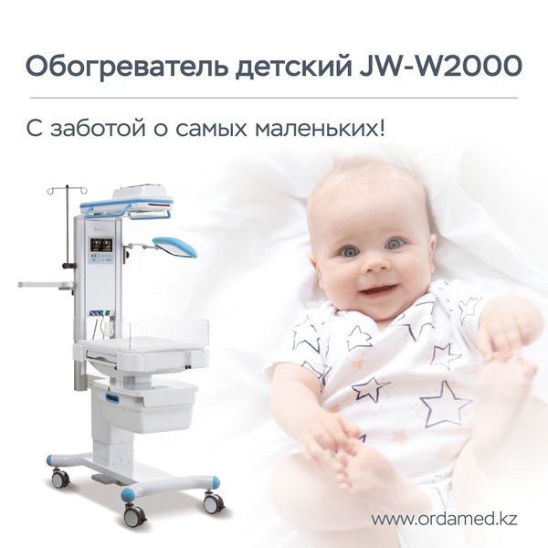огреватель детский JW-W2000, который представляет собой систему с микропроцессорным управлением функциями обогрева (ручное и автоматическое) и с опцией фототерапевтической лампы. Преимущества: Безопасность; Расширяемая рельсовая система; Мягкий матрас; Плата для рентген кассеты; Светодиодная смотровая лампа; Выдвижной ящик; Регулируемый наклон головной части; Легкий наклон матраса. Позаботьтесь о Ваших маленьких пациентах уже сейчас! Сотрудничая с нами, Вы получаете: 37 месяцев гарантии на всё оборудование, 5 лет гарантии на оборудование производства Ordamed, бесплатную инсталляцию и лучшее сервисное обслуживание! БЕСПЛАТНО по РК) info@ordamed.kz