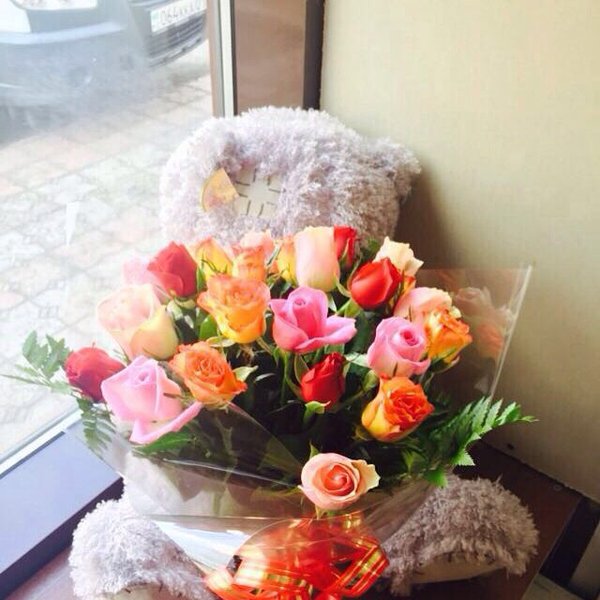 Новая акция!!! При покупке 25 роз вы получаете мягкую игрушку в подарок. Цена 20990. Спешите друзья!!!!