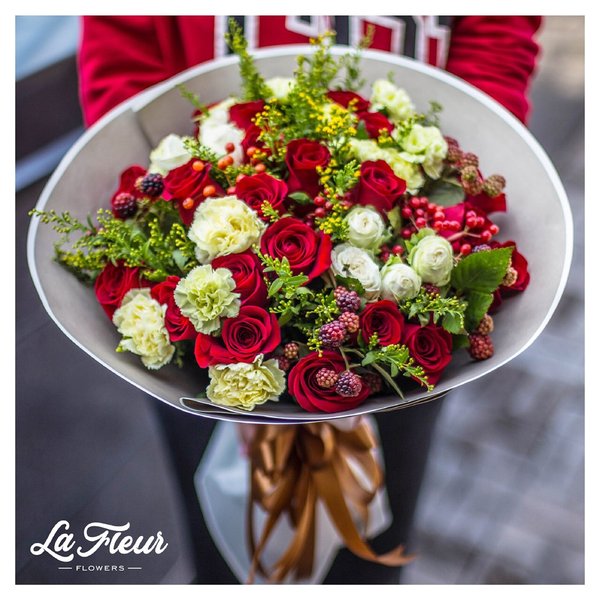 Если вы хотите получить индивидуальный и креативный вариант букета на заказ — обратите внимание на стильные и дизайнерские букеты от lafleur.kz Мы любим то что делаем! Стоимость букета 17.900 тг.