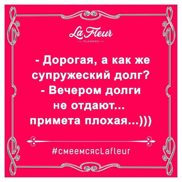 — Я восхищён вашими чувствами! Вы с женой вместе живете 20 лет и, до сих пор, гуляя по городу, держитесь за руку! — Если я ее отпущу, она обязательно что-нибудь купит.))) ️Ставьте лайк ️, отмечайте своих друзей в комментариях снизу Мы продолжаем нашу рубрику #смеемсясLafleur lafleur.kz