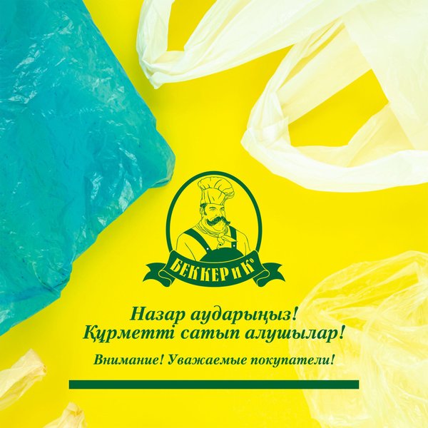 По инициативе Министерства Экологии, Геологии и Природных ресурсов Республики Казахстан, с 12 февраля 2020 года на кассах «Беккер и К» прекращается БЕСПЛАТНАЯ раздача ПАКЕТОВ. Основная цель, сокращение потребления пластика в Казахстане. Стоимость пакета — 5 тг. Спасибо за понимание!