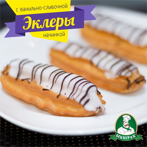 Невероятно нежная трубочка из заварного теста с ванильно-сливочной начинкой, поверхность покрыта сахарной помадкой и декорирована шоколадной глазурью