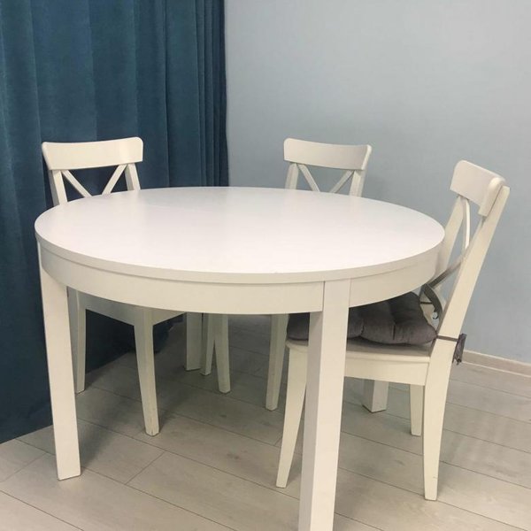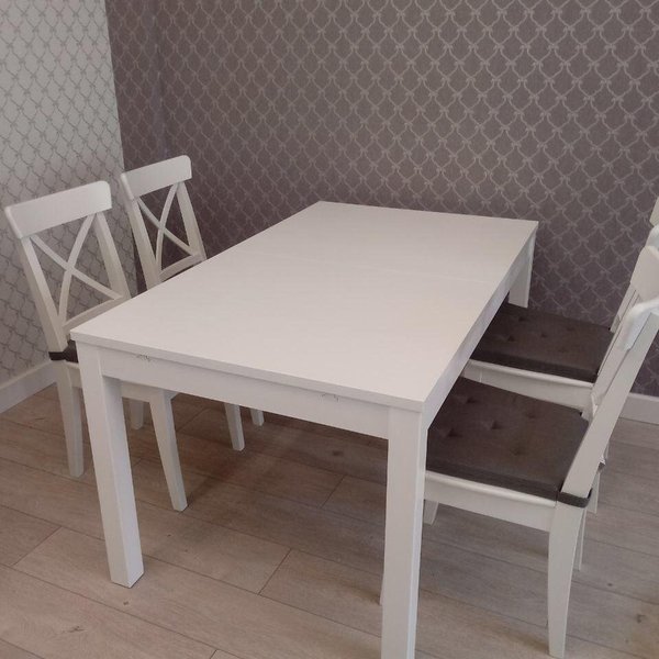 Кому недорогой комплект для столовой? Раздвижной стол ВАНГСТА (7999 руб) и стулья АДДЕ (каждый по 699 руб). Курс рубля и стоимость доставки уточняйте в дайрект.