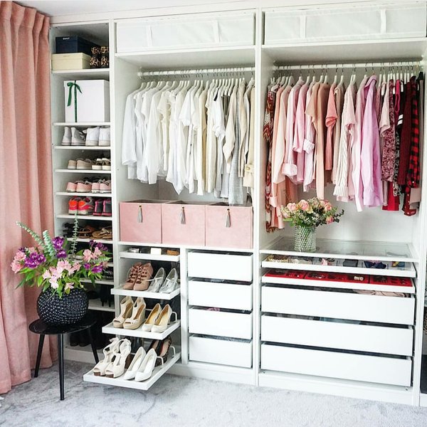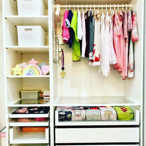 стеллажей и выдвижные ящики облегчают сортировку вещей. Во второй части место найдется и для платьев Алии, и для костюмов супруга. Все довольны. ⠀ ️Лайк Алие за находчивость и @idostavka.kz за исполнение
