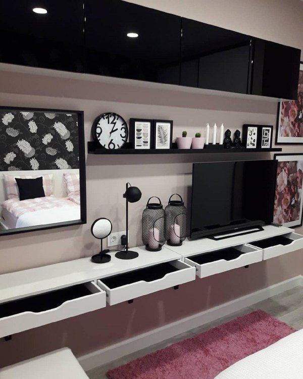 «Вау решение» для гостиной! Для ТВ использованы навесные полки, как Вам?