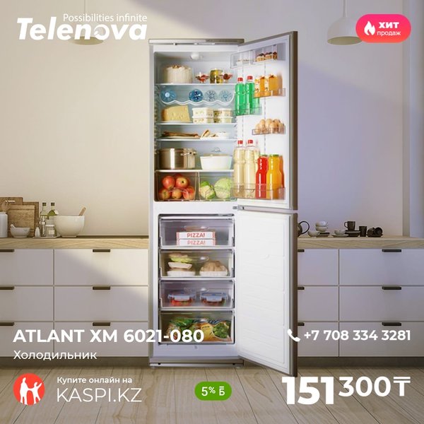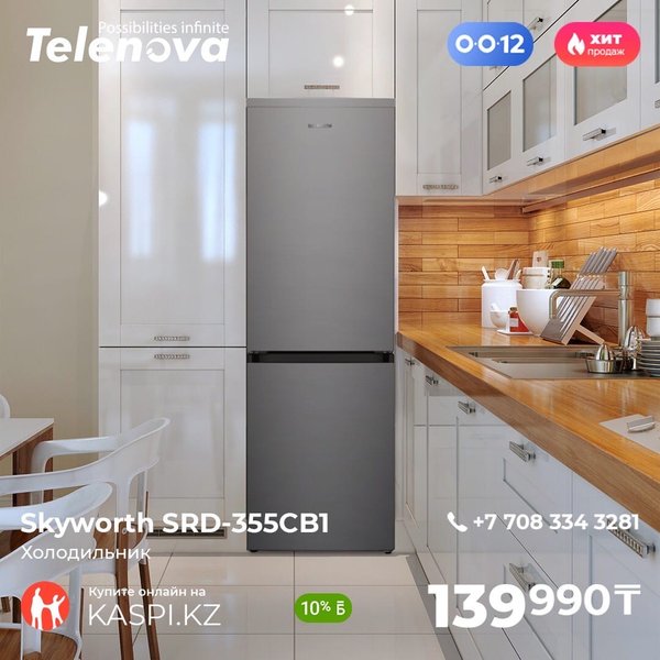 свежести можно убрать, поставив на их место большие блюда, формы для запекания или напитки. Свежесть в холодильнике обеспечивает специальный угольный фильтр AirFresh, который абсорбирует и нейтрализует неприятные запахи и бактерии в течение всего срока службы прибора. Идеальное расположение: холодильник можно установить вплотную к стенам и мебели, без зазоров сзади и по бокам; дверь холодильника открывается на 90°, при этом его полки и ящики выдвигаются полностью. Проходите в Каспи Магазин, выбирайте Telenova и оформляйте покупку не выходя из дома! У нас самые низкие цены! Доставка по всему Казахстану. ️ Алматы, ТЦ МЕРЕЙ, пр. Суюнбая 2, к. 10, ⠀ Шымкент, ул. Тауке хана 63, Нур-Султан, ул. Шевченко 10/1,
