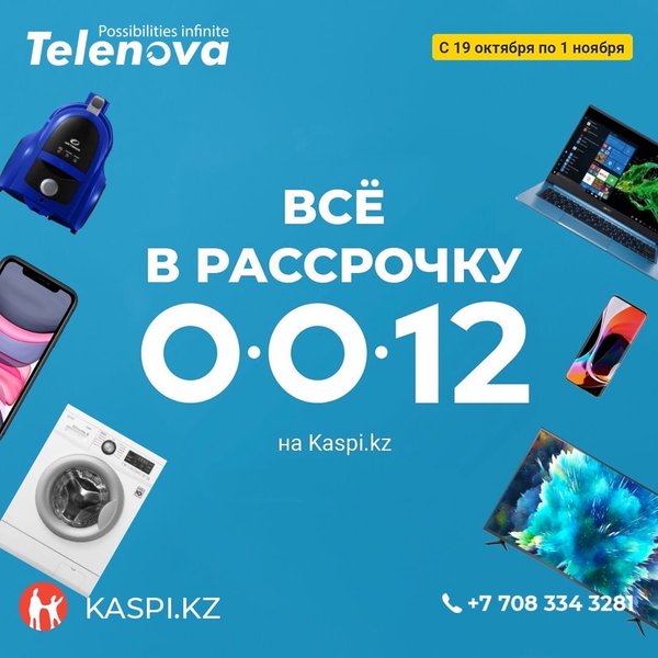 У вас все ещё есть шанс забрать понравившийся вам товар в нашем гипермаркете в рассрочку на год, без комиссии и переплат! Ваши покупки ждут вас! Проходите в Каспи Магазин, выбирайте Telenova и оформляйте покупку не выходя из дома! У нас самые низкие цены! Доставка по всему Казахстану. ️ Алматы, ТЦ МЕРЕЙ, пр. Суюнбая 2, к. 10, ⠀ Шымкент, ул. Тауке хана 63, Нур-Султан, ул. Шевченко 10/1,