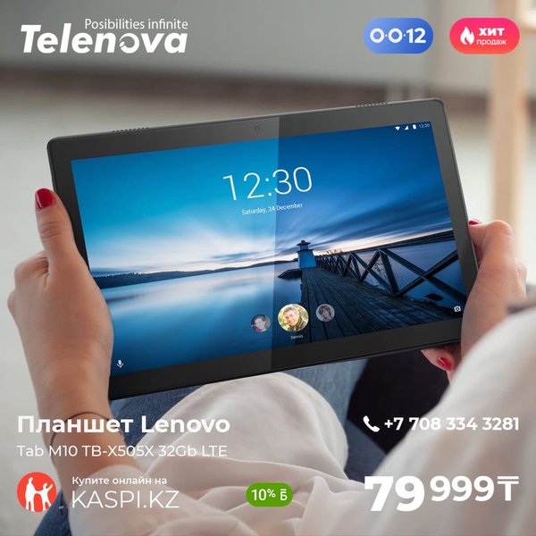 шоу и любых других видео. Где бы вы ни находились, два фронтальных динамика с поддержкой технологии Dolby Atmos ®создадут эффект полного погружения, как в кинотеатре. Отдайте планшет детям и ни о чем не беспокойтесь Дополнительный пакет Kid's Pack — это все, что нужно для того, чтобы дети могли безопасно пользоваться планшетом и не повредить его. Он включает в себя ударопрочный чехол и предусматривает специальный детский режим работы, при котором возможен просмотр только специально отобранного и постоянно обновляемого контента. Система Android Оснащенные самой новой операционной системой Android, эти планшеты отлично подходят для работы и развлечений. Они представлены в разных стилях и с разными наборами функций — от самых необходимых до профессиональных. Идеальные устройства для всей семьи — их с легкостью освоят даже дети и пожилые члены семьи, не говоря обо всех остальных. Проходите в Каспи Магазин, выбирайте Telenova и оформляйте покупку не выходя из дома! У нас самые низкие цены! Доставка по всему Казахстану. ️ Алматы, ТЦ МЕРЕЙ, пр. Суюнбая 2, к. 10, ⠀ Шымкент, ул. Тауке хана 63, Нур-Султан, ул. Шевченко 10/1,