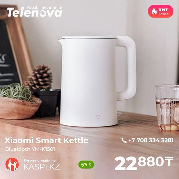 трите. Став обладателем умного чайника Xiaomi, вы ощутите всю пользу горячей воды. Внешний корпус чайника выполнен из пищевого полипропилена белого цвета. Дизайн выдержан в элегантном минималистическом стиле. Особая проработка была проведена в отношении носика, который обеспечивает аккуратную струю без брызг и резких толчков. Благодаря лаконичному дизайну чайник отлично впишется в любое место в доме, будь то чайный столик в гостиной или барная стойка на кухне. Дизайнеры серьезно подошли к поставленной задаче, ведь в их глазах чайник это не просто кухонный прибор, а важная часть быта и интерьера, заслуживающая тщательной проработки каждой детали. Проходите в Каспи Магазин, выбирайте Telenova и оформляйте покупку не выходя из дома! У нас самые низкие цены! Доставка по всему Казахстану. ️ Алматы, ТЦ МЕРЕЙ, пр. Суюнбая 2, к. 10, ⠀ Шымкент, ул. Тауке хана 63, Нур-Султан, ул. Шевченко 10/1,