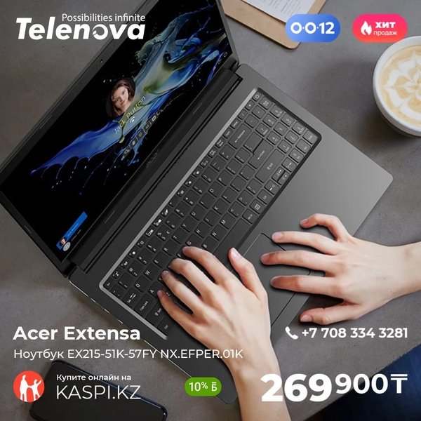 РАССРОЧКА 0️⃣-0️⃣-1️⃣2️⃣ от Kaspi.kz Acer Extensa Ноутбук, который Отлично подходит, как для офиса, так и для просмотра любимых сериалов тихим вечерком! А с нашими ценами этот чудо-ноутбук можно взять по очень привлекательной цене! _______________________________ Хотим напомнить, что наши партнеры Kaspi.kz проводят рассрочку 0️⃣-0️⃣-1️⃣2️⃣ У вас все ещё есть шанс забрать понравившийся вам товар в нашем гипермаркете в рассрочку на год, без комиссии и переплат! Ваши покупки ждут вас! Проходите в Каспи Магазин, выбирайте Telenova и оформляйт… — Читать дальше