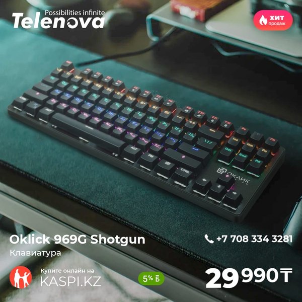ажатий. Русские и английские буквы на квадратные клавиши нанесены белым цветом. Цифровой блок отсутствует. Есть мультимедийные клавиши, которые можно настроить согласно своему усмотрению. Проходите в Каспи Магазин, выбирайте Telenova и оформляйте покупку не выходя из дома! У нас самые низкие цены! Доставка по всему Казахстану. Алматы, ТЦ МЕРЕЙ, пр. Суюнбая 2, к. 10, ⠀ Шымкент, ул. Тауке хана 63, Нур-Султан, ул. Шевченко 10/1,