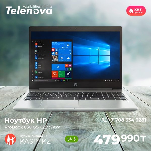 ти: DDR4-SDRAM. Полный объем хранения: 256 GB, Носитель: Твердотельный накопитель (SSD), Тип оптического привода: DVD-ROM. Модель встроенного графического адаптера: Intel® UHD Graphics 620. Установленная операционная система: Windows 10 Pro. Цвет товара: Серебристый Быстрая и эффективная беспроводная сеть Поддержка гигабитных скоростей Wi-Fi® с модулем Wi-Fi 6 (802.11ax). [2] Вам ничто не должно мешать Благодаря Windows 10 Pro, а также мощным средствам безопасности, функциям совместной работы и возможностям подключения от HP вы сможете легко справиться с любыми задачами. Современный профессиональный дизайн Этот компьютер создан специально для бизнеса. Ноутбук HP ProBook 650 соответствует стандарту MIL-STD 810G, а его корпус с серебристым покрытием и четкими контурами представляет собой воплощение смелого и современного дизайна. Высокая производительность Ускорение работы ресурсоемких бизнес-приложений благодаря процессору Intel® Core™ 8-го поколения. Адаптер беспроводной локальной сети HP с расширенным диапазоном поможет всегда оставаться на связи. Проходите в Каспи Магазин, выбирайте Telenova и оформляйте покупку не выходя из дома! У нас самые низкие цены! Доставка по всему Казахстану. Алматы, ТЦ МЕРЕЙ, пр. Суюнбая 2, к. 10, ⠀ Шымкент, ул. Тауке хана 63, Нур-Султан, ул. Шевченко 10/1,