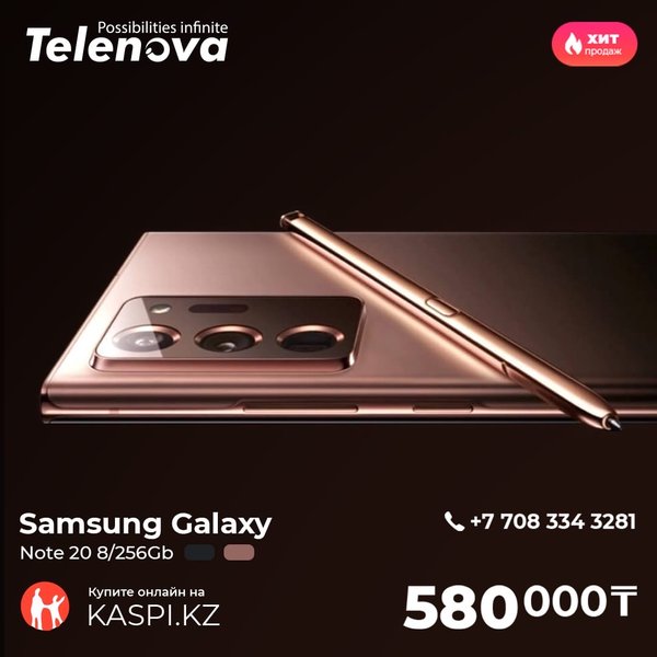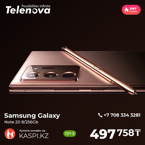 Galaxy Note 20 один из лучших смартфонов 2020 года, отлично подходит вэб-дизайнерам и просто стабильным людям, кто занимается бизнесом и кому необходимо всегда быть на связи! А с нашим магазином они стали намного доступней! ️ Самые выгодные цены у нас _______________________________ Ваши покупки ждут вас! Проходите в Каспи Магазин, выбирайте Telenova и оформляйте покупку не выходя из дома! У нас самые низкие цены! Доставка по всему Казахстану. ️ Алматы, ТЦ МЕРЕЙ, пр. Суюнбая 2, к. 10, ⠀ Шымкент, ул. Тауке хана 63, Нур-Султан, ул.… — Читать дальше