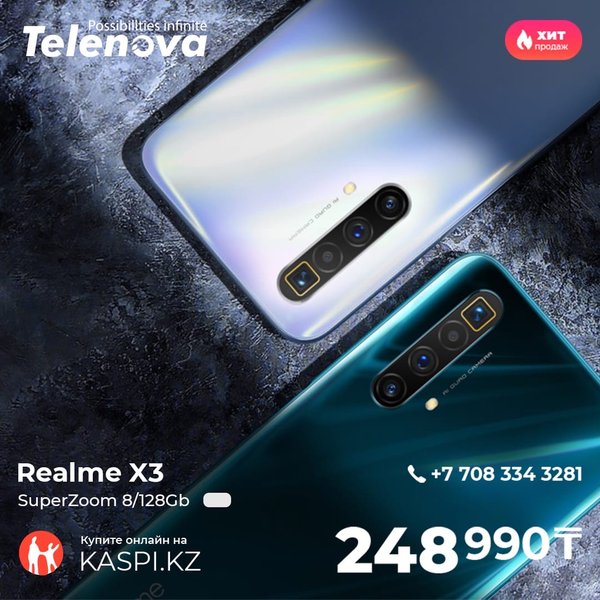 Смартфоны от Realme отличаются своей производительностью и уникальным дизайном на рынке! В особенности Realme X3, данный мобильный телефон является реальным флагманом! А с нашим магазином они стали намного доступней! ️ Самые выгодные цены у нас _______________________________ Ваши покупки ждут вас! Проходите в Каспи Магазин, выбирайте Telenova и оформляйте покупку не выходя из дома! У нас самые низкие цены! Доставка по всему Казахстану. ️ Алматы, ТЦ МЕРЕЙ, пр. Суюнбая 2, к. 10, ⠀ Шымкент, ул. Тауке хана 63, Нур-Султан, ул. Шевченко… — Читать дальше