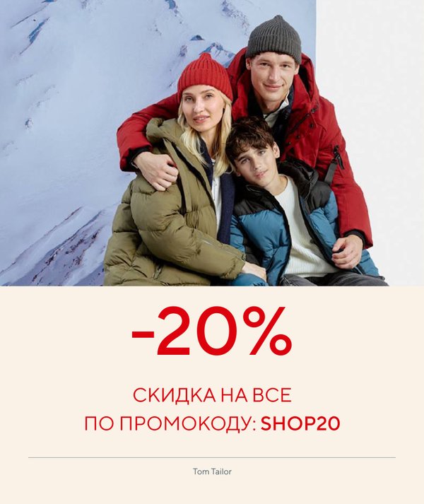 Дорогие друзья, в этом году мы тоже решили порадовать вас небольшим новогодним сюрпризом в виде Адвент календаря TOM TAILOR со специальными акциями и приятными сердцу промокодами Для тех, кто остается на каникулы дома или планирует отправиться в горы, сегодняшнее окошко в Адвенте будет особенно актуально, потому что по промокоду АДВЕНТ с 4 по 10 декабря будет действовать скидка -20% на всю верхнюю одежду Одевайтесь потеплее, по прогнозу уже на следующей неделе похолодание и снег