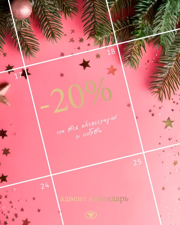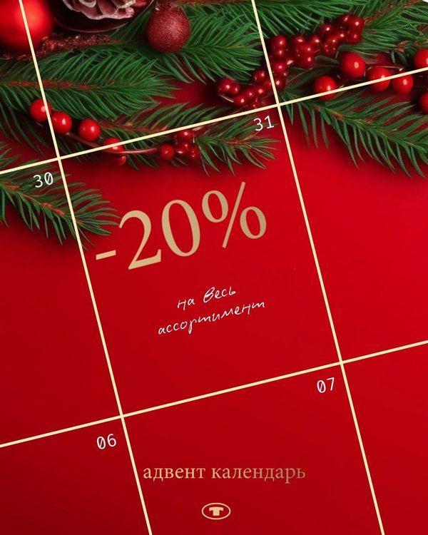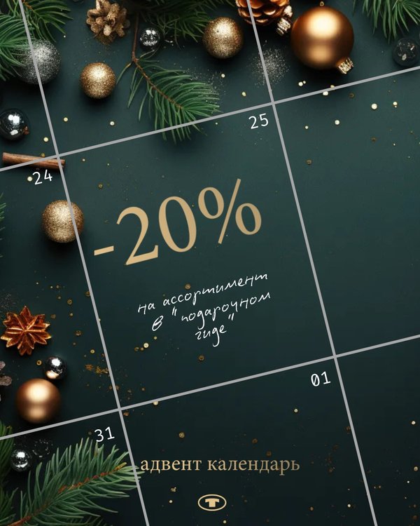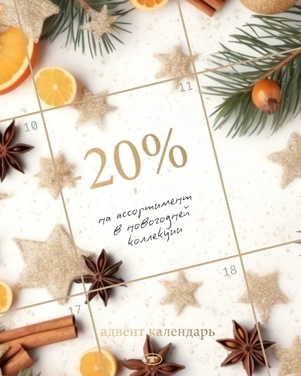Сегодня открываем еще одно окошко в нашем импровизированном адвент календаре: ваш сюрприз — 20% скидка на новогоднюю коллекцию Предложение действует с 11/12 по 17/12, чтобы воспользоваться скидкой укажите промокод АДВЕНТ. Отличных покупок!