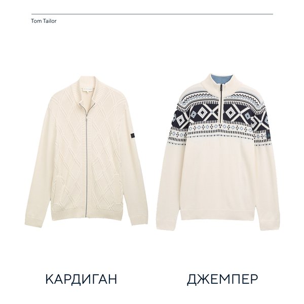 Мы категорически протестуем против исключительно темных расцветок в мужском зимнем гардеробе и призываем вас вместе с Tom Tailor переходить на светлую сторону! А для вашего вдохновения мы подобрали свитера, свитшоты, куртку, брюки и аксессуары в молочных оттенках. Ну красиво же! Кстати все эти вещи отлично подойдут для подарка. — Молочный кардиган — Теплая куртка из тонкого вельвета — Джемпер с высоким воротником и принтом — Свитшот с принтом горнолыжной станции — Джемпер с узором — Шарф — Шапка — Спорт брюки-джоггеры