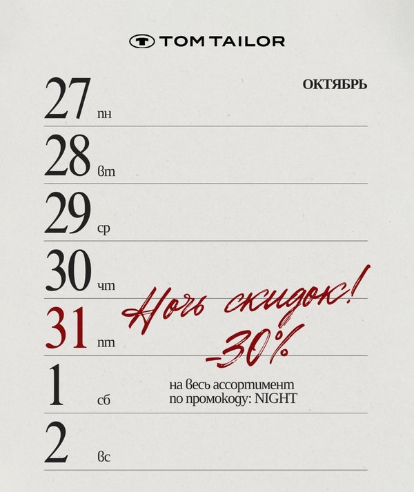 Tom Tailor Russia25 октября 2025 в 20:00