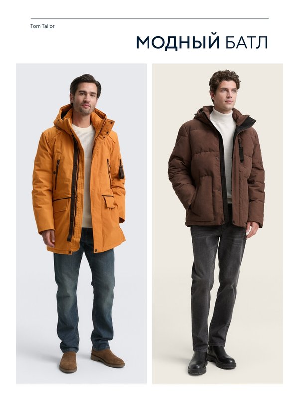 Верхняя зимняя одежда Tom Tailor — наша особенная гордость. Нам удалось совместить моду, комфорт, высокие технологии и заботу об экологии, создав самые теплые куртки, парки и пуховики из высокотехнологичных тканей.
