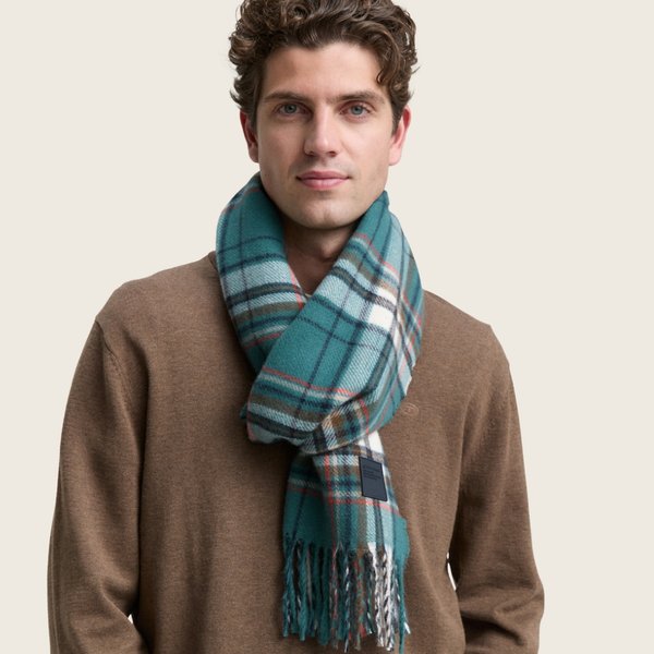 В мужской осенней капсуле появились аксессуары — шапки и шарфы в новых, оригинальных расцветках. Выбор большой, но сегодня мы предлагаем вам дуэт из шапки песочного оттенка и широкого шарфа в зелено-бежевую клетку. Они выглядят стильно, ярко и не банально и отлично сочетаются с верхней одеждой в сером, черном, темно-синем, коричневом и даже бордовом цвете. Шарф Шапка