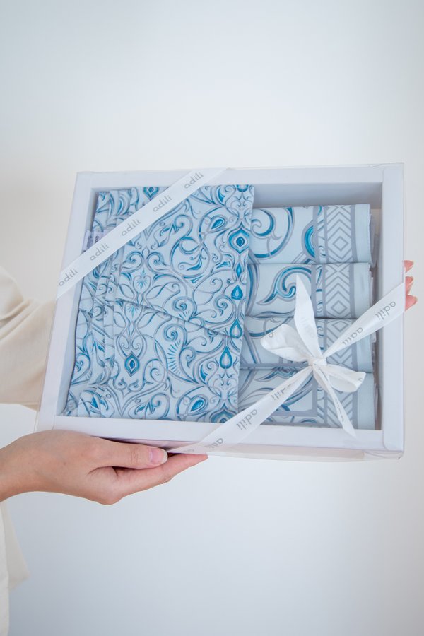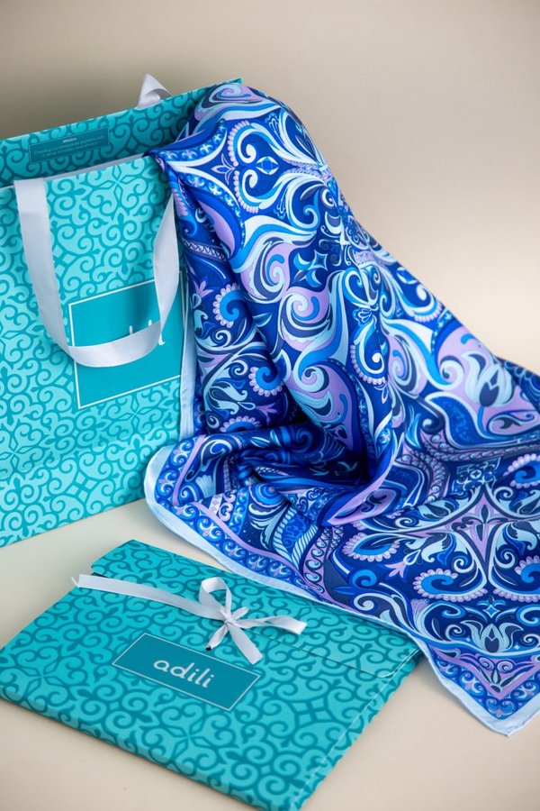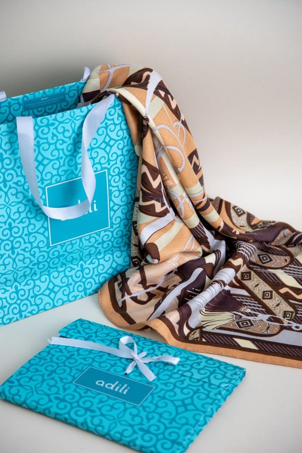 Adili — это внимание к деталям Мы хотим, чтобы вы получали удовольствие от покупки или подарка в каждом моменте. Именно поэтому упаковываем наши платки сначала в шуршащую кальку с орнаментом, потом в красивую коробочку на лентах, а потом в плотный и стильный пакет, также украшенный национальными узорами.