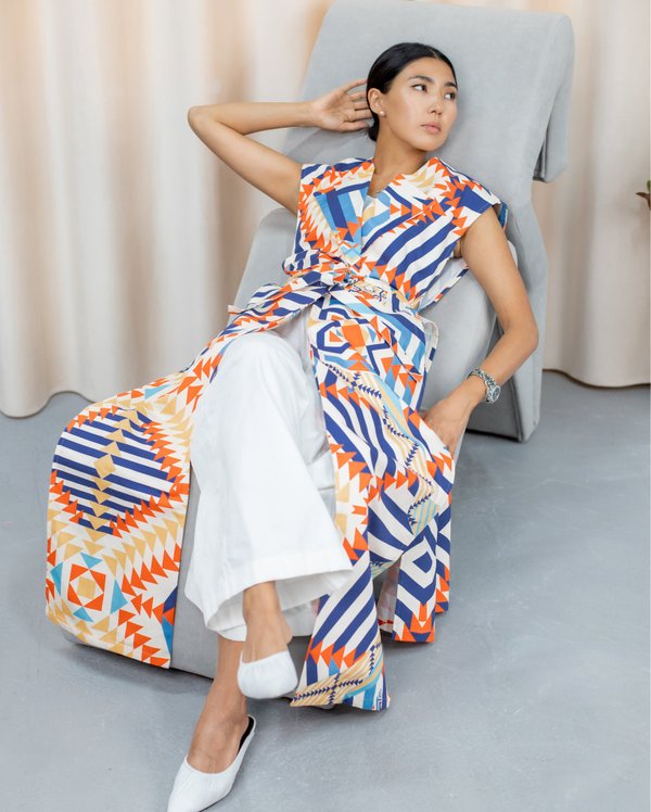 Принты Адили уникальны Наша команда дизайнеров создаёт их с нуля соединяя национальный орнамент с современными цветовыми решениями. Затем на собственном производстве мы печатаем эти принты с помощью современного экологичного оборудования на натуральном хлопке или шелке и готовые изделие шьют с любовью наши казахстанские мастерицы.