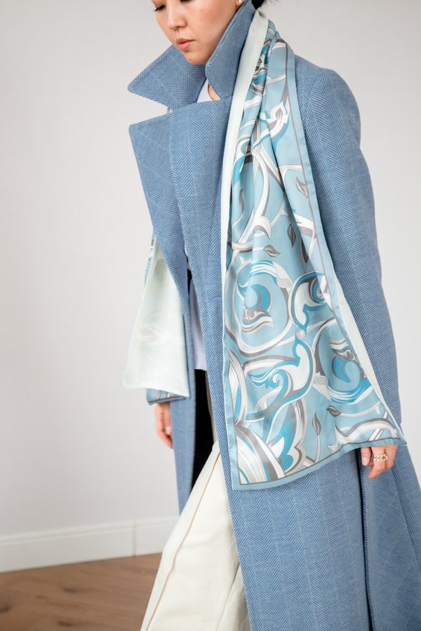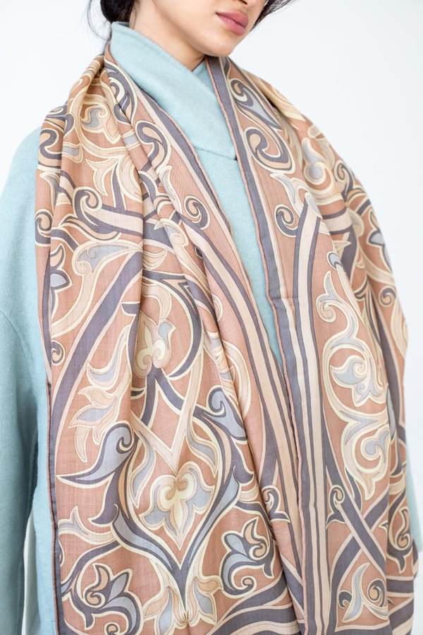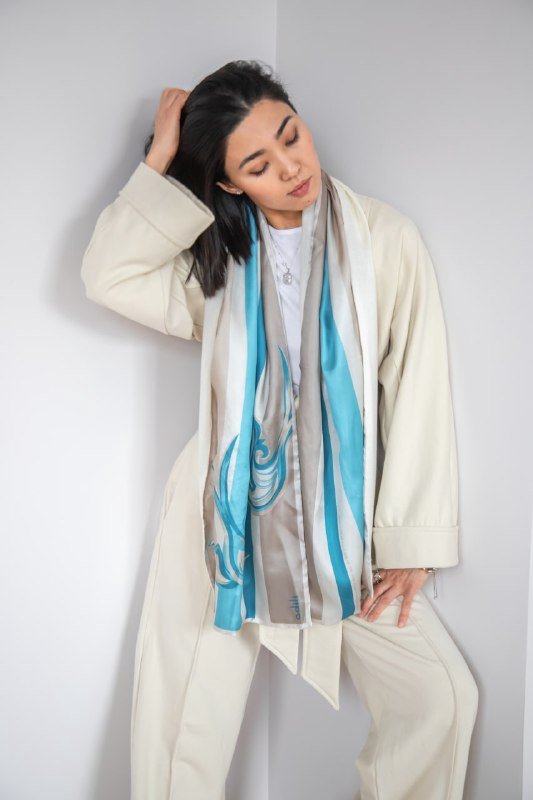 В чем особенность наших новых шарфов? Конечно же в том, что они двухсторонние! Больше не нужно выбирать между красивым шелковым шарфом и теплым шерстяным, потому что Адили объединили их в одном стильном аксессуаре. С одной стороны шарф шелковый с принтом, а с другой из смеси шерсти с шелком. Листайте карусель, чтобы увидеть фактуру