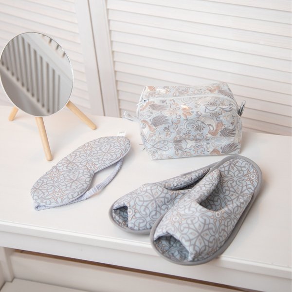 Мягкие тапочки, удобные повязки на голову и маски для сна и стильные косметички для хранения любимых бьюти-средств