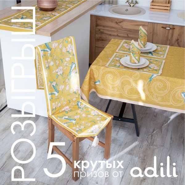 Соберите свой набор для кухни! В магазинах Адили вы найдете фартуки, прихватки, салфетки, скатерти и подтарельники в оригинальных принтах от наших дизайнеров.