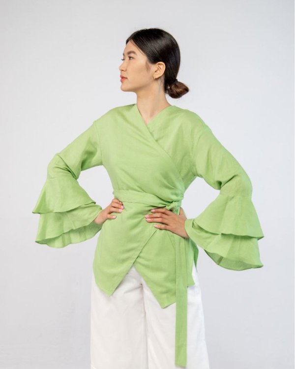 Стильная и необычная блузка с воланами на рукавах подчеркнет талию и добавит в образ нежность и женственность. Отлично сочетается как с брюкками, так и с юбками.