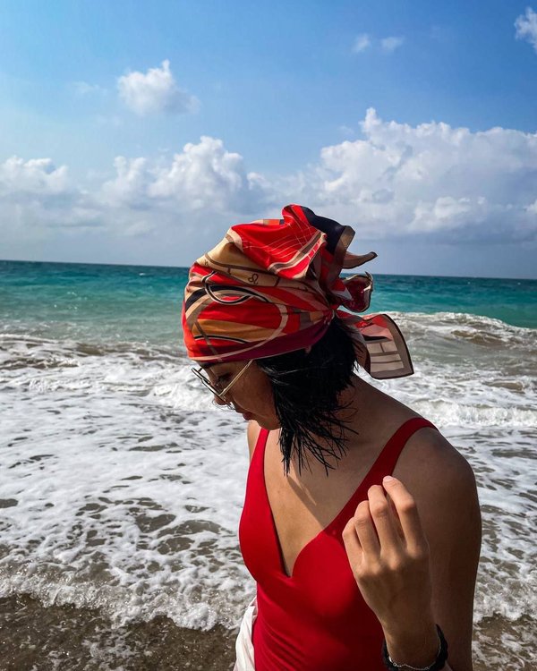 Шелковый платок незаменимая вещь на отдыхе В жару такой головной убор неплохо заменит вам привычную бейсболку или шляпу. Он защитит ваши волосы от воздействия солнечных лучей и позволит коже головы «дышать». Например такой платок 70*70 см из коллекции «Зодиак» очень удобно носить как бандану на пляже.