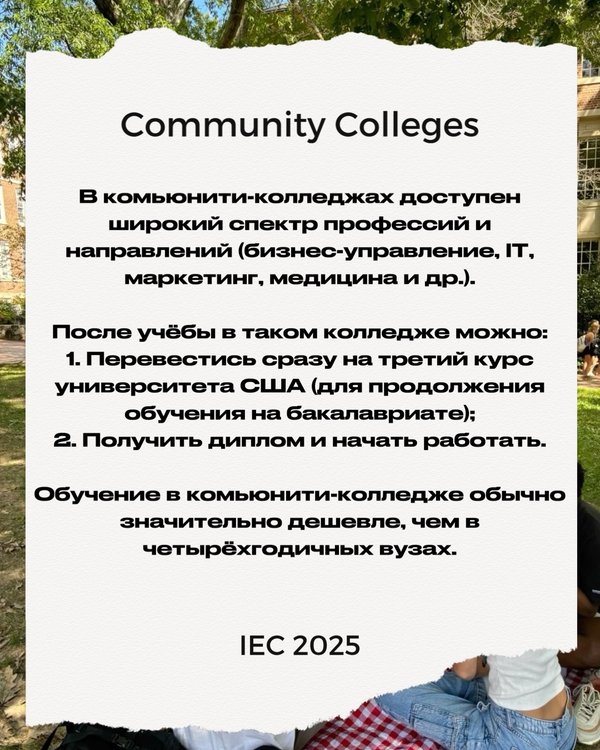 Учёба и работа в США — реальность с программой Community Colleges! ⠀ Community Colleges — это государственные колледжи по всей Америке, где можно получить качественное образование, изучать английский и начать карьеру. Обучение длится 2 года, по окончании — диплом Associate Degree и возможность перевестись в университет или начать работать по специальности. ⠀ Почему это отличный старт: Не нужно сдавать TOEFL — только внутренний тест колледжа Лёгкое поступление, гибкие сроки Виза F-1 с правом работать Возможность жить и работать в США в… — Читать дальше