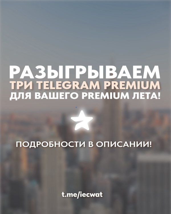 Лето с Telegram Premium — просто так, для тебя! Привет, друзья! Мы запускаем розыгрыш 3-х подписок на Telegram Premium на 6 месяцев Да-да, ты сможешь поставить тот самый смешной смайлик рядом со своим именем! Условия розыгрыша ты найдешь в закрепленной публикации в нашем Telegram канале (@iecwat). Ссылка на Telegram канал доступна в шапке профиля Итоги — 12 июня Выберем 3 победителей случайным образом среди тех, кто выполнил все условия ️ Спасибо, что вы с нами! Впереди ещё много полезного, интересного и вдохновляющего! Центр Междуна… — Читать дальше