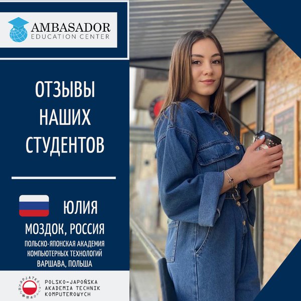 ьском языке. До момента приезда в Польшу я вообще не знала ничего по-польски. Говорили, что этот ВУЗ совсем легкий, но закончив 1 семестр этого ВУЗа с точностью могу сказать, что тут совсем не легко и если действительно учиться, то можно получить достойное образование. Преподаватели очень требовательные. Я горжусь, что получу европейский диплом в будущем. Моя мечта сбылась благодаря образовательному центру AMBASADOR. Советую всем поступать через это агентство, ни капельки не пожалеете, они профессионалы своего дела.