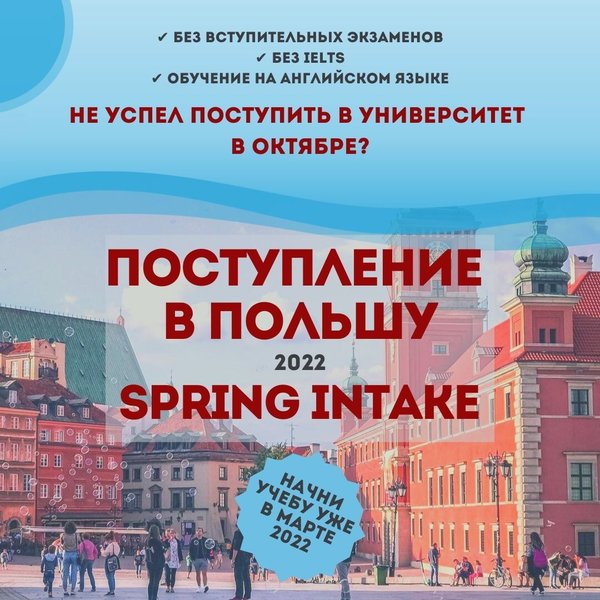 SPRING INTAKE 2022 Поступление в Польшу на весенний семестр (начало обучение в марте 2022). ⠀ Не успел поступить в Польшу осенью? У нас есть предложение специально для ТЕБЯ! ⠀ Университеты Польши проводят набор на весенний семестр. Твой первый семестр начнётся уже в марте 2022 года. ⠀ Учеба в Польше на английском языке! Невероятно выгодное обучение в Европе! ⠀ Poland/Польша Варшава, Вроцлав, Торунь, Быдгощ, Домброва Гурнича Языки обучения: polski/English Уровни образования: бакалавриат (3 года)/магистратура (2 года) ⠀ Бакала… — Читать дальше