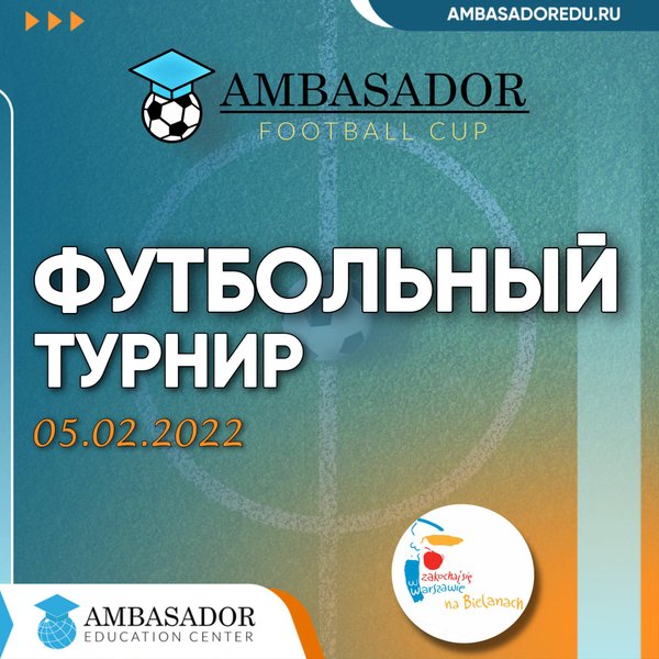 Турнир по футболу AMBASADOR Football Cup! Образовательный центр AMBASADOR приглашает студентов из всех городов Польши принять участие в футбольном турнире! Играешь в футбол? Собери друзей, заяви свою команду и прими участие в турнире. Условия игры: — травяное покрытие под надувным баллоном; — игра в формате 5+1; — в заявке максимум 10 игроков; — турнир пройдет 5 февраля в Варшаве (район Bielany). Приём заявок до 25 января! Количество мест ограничено. Команды будут приниматься после предоставление полной заявки. Команды принимаются согласн… — Читать дальше