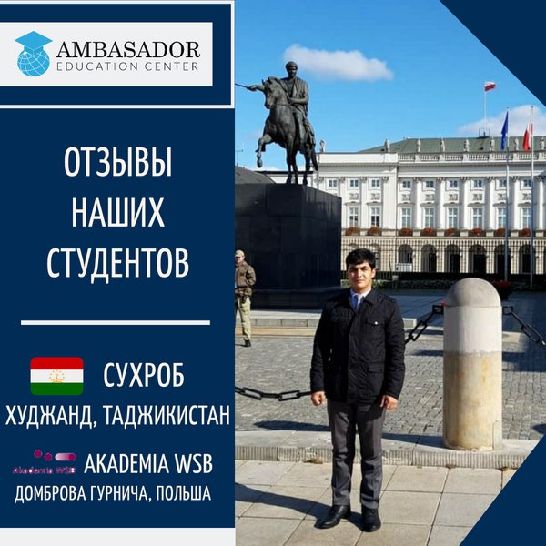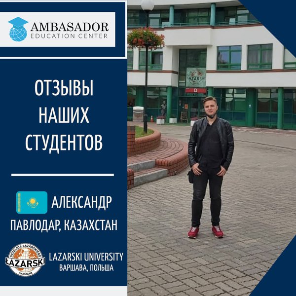 учиться в Европе. Вдруг неожиданно я наткнулась на страну Польша. Но я не рассматривала Польшу как страну для обучения и переезда. Так как эта страна была ещё не особо изведана казахстанскими студентами, то узнать было не у кого: задать вопросы, получить ответы. Конечно, понятное дело, было волнение: уезжая так далеко и надолго, не зная ничего, только информацию, полученную из интернета, было очень много вопросов и неопределенностей, так как ответов почти не было. И когда с родителями мы стали углубляться в этот вопрос, то мы поняли, что нам нужен человек, который мог бы элементарно сказать, с чего начать поступление в Европу. Опять таки, помог великий интернет. От многих компаний, предлагающих эти услуги, мы получали размывчатые ответы, и мы начали сомневаться, но спустя время, благодаря сложившемся обстоятельствам, мы узнали про замечательную компанию Образовательный центр Амбасадор, которой находится в Варшаве. Я зашла на их страницу в инстаграме, где оказалось очень много полезной информации: об университетах, о правилах поступления, также они отвечают на интересующие тебя вопросы в очень короткий промежуток времени. Сужу по своему опыту, так как сама однажды написала в Директ. Со мной связался непосредственно директор этого центра. С тех пор я очень благодарна этой образовательной кампании, особенно Никите, потому что с той минуты как нас начали консультировать, появлялось больше уверенности и сил в том, что мы движемся в правильном направлении и в том, что действительно ничего сложного в поступлении нет, как нам казалось в начале, не зная ничего о Польше и как туда поступить. Начиная с самого первого разговора, связывались мы по ватсапу. Никита давал полный план действий, шаг за шагом, начиная от получения первой справки и заканчивая уже личной встречей в Варшаве. Действительно мы убедились, что в этой кампании работают честные и надежные люди. Анализируя сейчас свои первые вопросы, некоторые из них уже сейчас кажутся неуместными, но несмотря на это, нам отвечали вежливо, терпеливо, объясняя каждый момент по тому или иному вопросу. Поступление, сбор справок, связь с университетом, мое поступление — все это было сделано благодаря компании Амбасадор. Проблем в Польше, лично для меня, не возникло. Опять-таки почему? Прилетев в Варшаву, были конечно волнения, так как я прилетела не только с большим багажом знаний, но и вещей. Однако, в самом аэропорту Варшавы меня встретил Никита, полностью помог с документами, подключил интернет и тп. Весь список услуг, который был у них прописан по договору, был выполнен, и даже больше. Никита сопроводил меня прямо до Домбровей Гурничей. На следующий день показал мне расположение университета и помог полностью с документами. В общем вся юридическая помощь, которая была необходима, была сделана ответственно Никитой. Университет принимает много иностранных студентов, включая студентов Эразмус. Много учащихся с разных стран Европы, а также Азии. Что очень интересно, университет пытается сблизить студентов: проводятся встречи, мероприятия, отмечаются национальные праздники разных стран. В общем студенческая жизнь очень интересна, потому что ты приобретаешь не только знания, но и новые знакомства, а также совершенствуешь свой английский, учишь польский, так как он необходим для жизни в Польше. В кон
