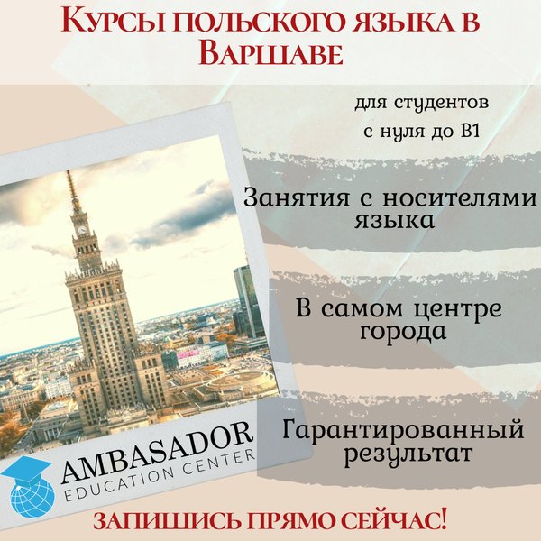 Курсы польского языка для студентов в Варшаве! ⠀ От базового до продвинутого (от А0 до В1) ⠀ Команда опытных преподавателей — носителей языка Занятия в оптимальных группах Учёба в самом центре Варшавы (5 минут от метро Ratusz Arsenał) Гарантированный результат — сертификат по окончанию курса ⠀ Начало курса уже в январе! ⠀ Успей записаться до 31 декабря ⏰ ⠀ Внимание! Акция! Приведи друга и получи скидку 10% на курс ⠀