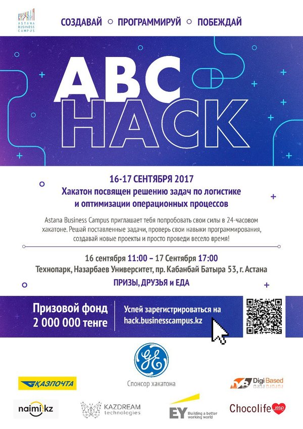 Astana Business Campus приглашает тебя попробовать свои силы в 24 часовом хакатоне. Решай поставленные задачи, проверь свои навыки программирования, создавай свои проекты и проведи время весело! Призовой фонд 2 000 000! Даты, время и место смотрите на нашей афише. KITE Kazakh IT Education