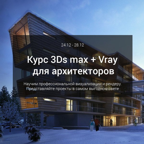 учитесь работать с освещением узнаете все секреты профессиональной работы модельеров и визуализаторов получите сертификат международного образца от Autodesk, подтверждающий знание 3ds max! Встречайте Новый год с новыми знаниями и профессиональными навыками — освойте 3ds max и Vray уже сейчас! Регистрация на курс по ссылке:
