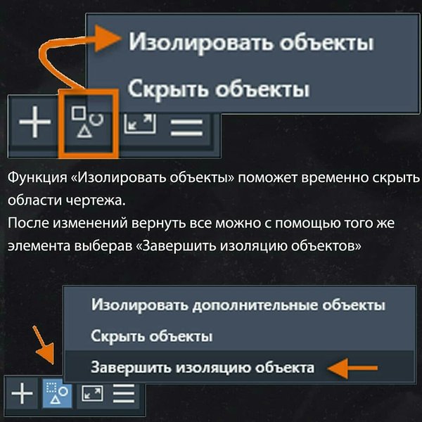 вместо заданного по умолчанию значения 60. ⠀ 4. Большие и сложные чертежи затрудняют визуальное восприятие. Это может замедлить работу и привести к ошибкам при панорамировании и зумировании. Обычно ненужные в определенный момент слои отключаются или замораживаются. Временно скрыть области чертежа можно с помощью функции «Изолировать объекты». Эта функция находится в строке состояния в правом нижнем углу. После этого остается выбрать границы и выполнить зумирование в их пределах колесиком мыши. ⠀ 5. В текущей версии AutoCAD можно переключать предыдущие виды в любом направлении на вкладке «Вид» панели «Навигация». По умолчанию данная панель скрыта. Чтобы ее включить щелкните правой кнопкой на вкладке «Вид». В появившемся меню щелкните «Показать панели»,, затем выберите «Навигация»⠀ Об этих и многих других полезных функциях мы рассказываем на нашем курсе Основы Autocad. Курс охватывает ознакомление с основными принципами работы, инструментами, методами создания чертежей. Также курс включает в себя не только теорию но и практику ⠀ Запишитесь на курс или проконсультируйтесь с менеджером: тел.: моб.: Whatsapp) e-mail: office@l-p.kz ⠀