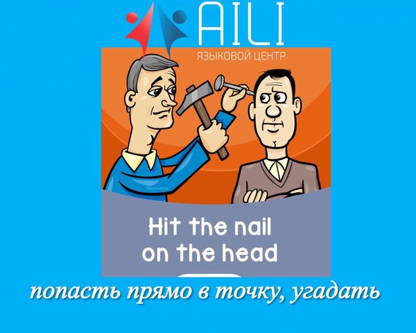 Идиома: hit the nail on the head Перевод: попасть прямо в точку, угадать Пример: The accountant hit the nail on the head when he wrote the report about the bank's problems. Бухгалтер попал прямо в точку, когда написал доклад о проблемах банка.