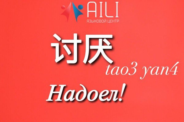 Добрый день, друзья! Слово ”讨厌” часто используется в повседневной жизни. Благодаря этому слову вы можете выразить своё недовольство, дословно можно так же перевести как: «Бесишь!», «Надоел!», «Раздражаешь»!