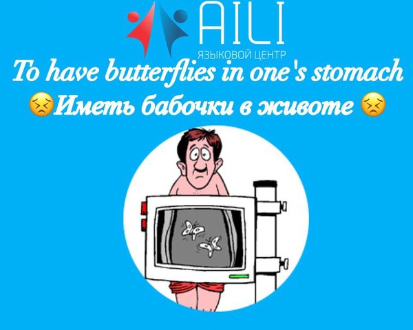 Идиома дня: «to have butterflies in one's stomach«- „иметь бабочки в животе, переживать“». E.g.: On the day of my wedding I had butterflies in my stomach.» В день моей свадьбы я очень сильно нервничала. Study English with AILI